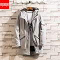 Long Trench Coat Jacket Men Cotton Autumn Spring Black Hip Hop Japanese Coats Streetwear Men's Hooded Army Green Casual Jackets